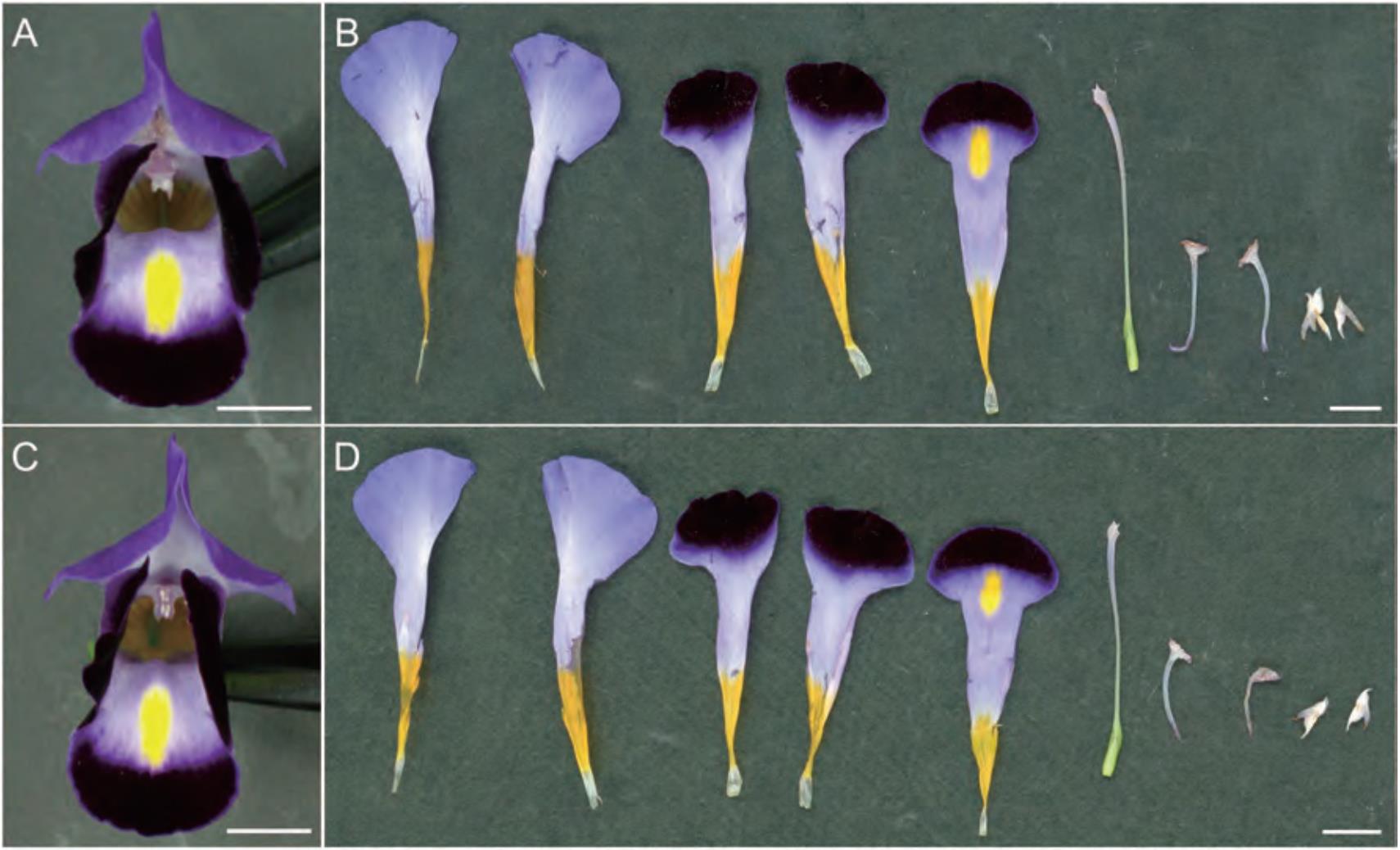 Mutation in OPR3 ortholog affects stamen function but not petal size in Torenia fournieri